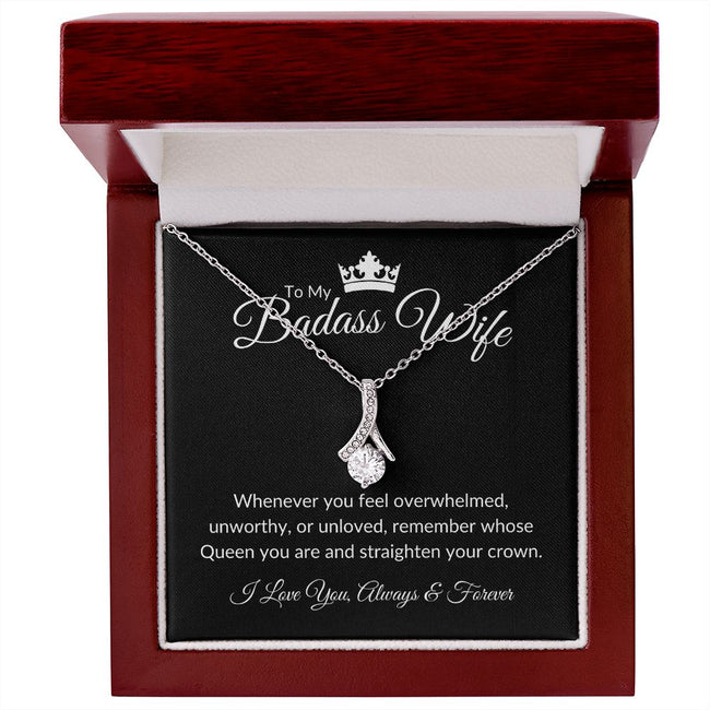 Imagine her reaction when she opens this stunning gift! The Alluring Beauty necklace features a petite ribbon shaped pendant that is sure to dazzle your special someone. Whether it's a birthday or anniversary, make sure to get her a gift she will love for years to come.